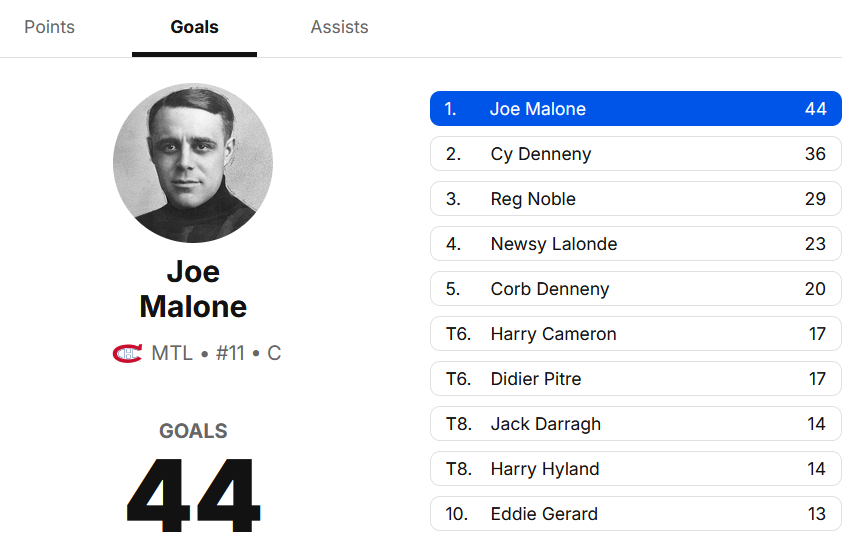 Joe Malone Goal leader 1920